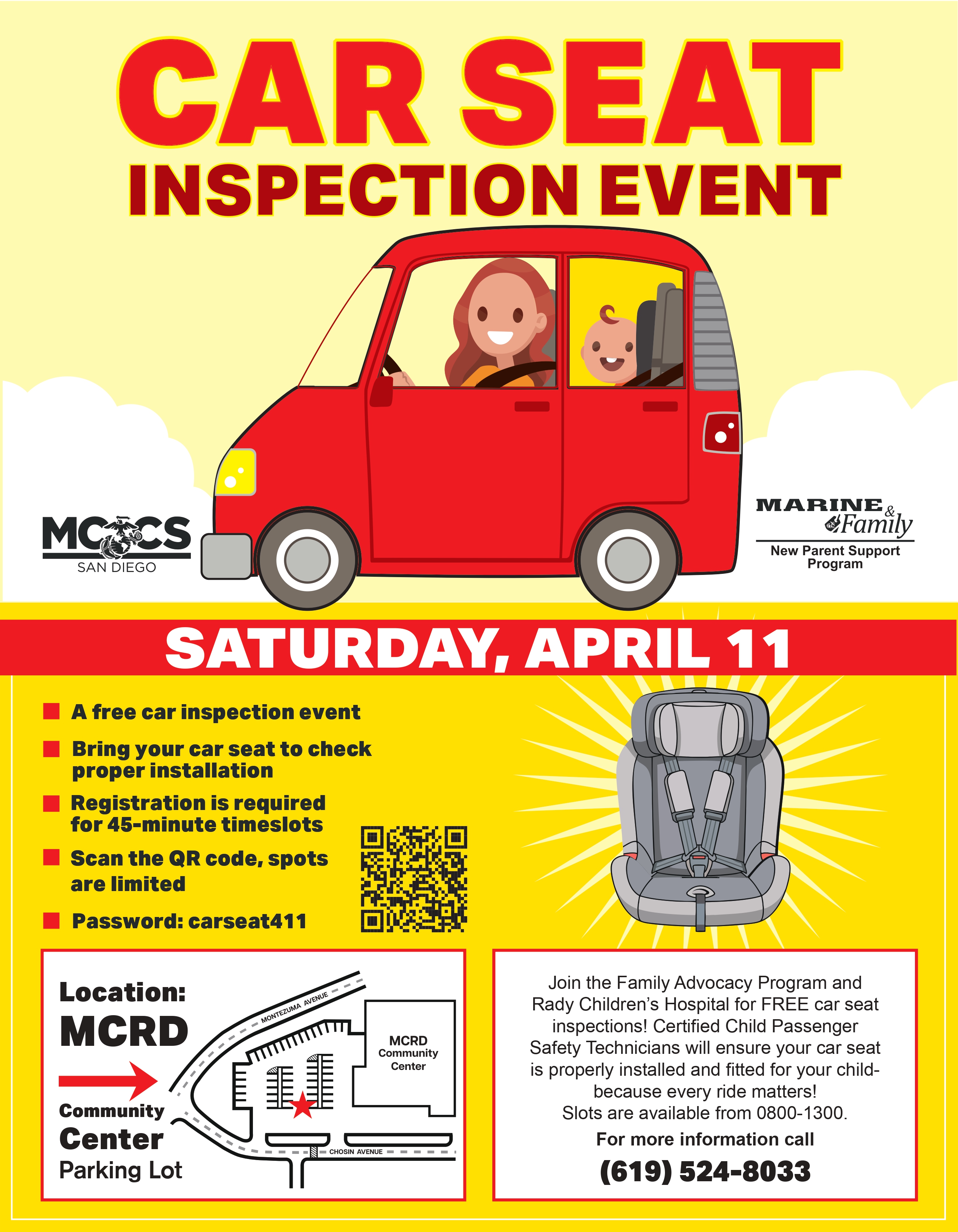 Use password "carseat411". Spots are limited and registration is required.