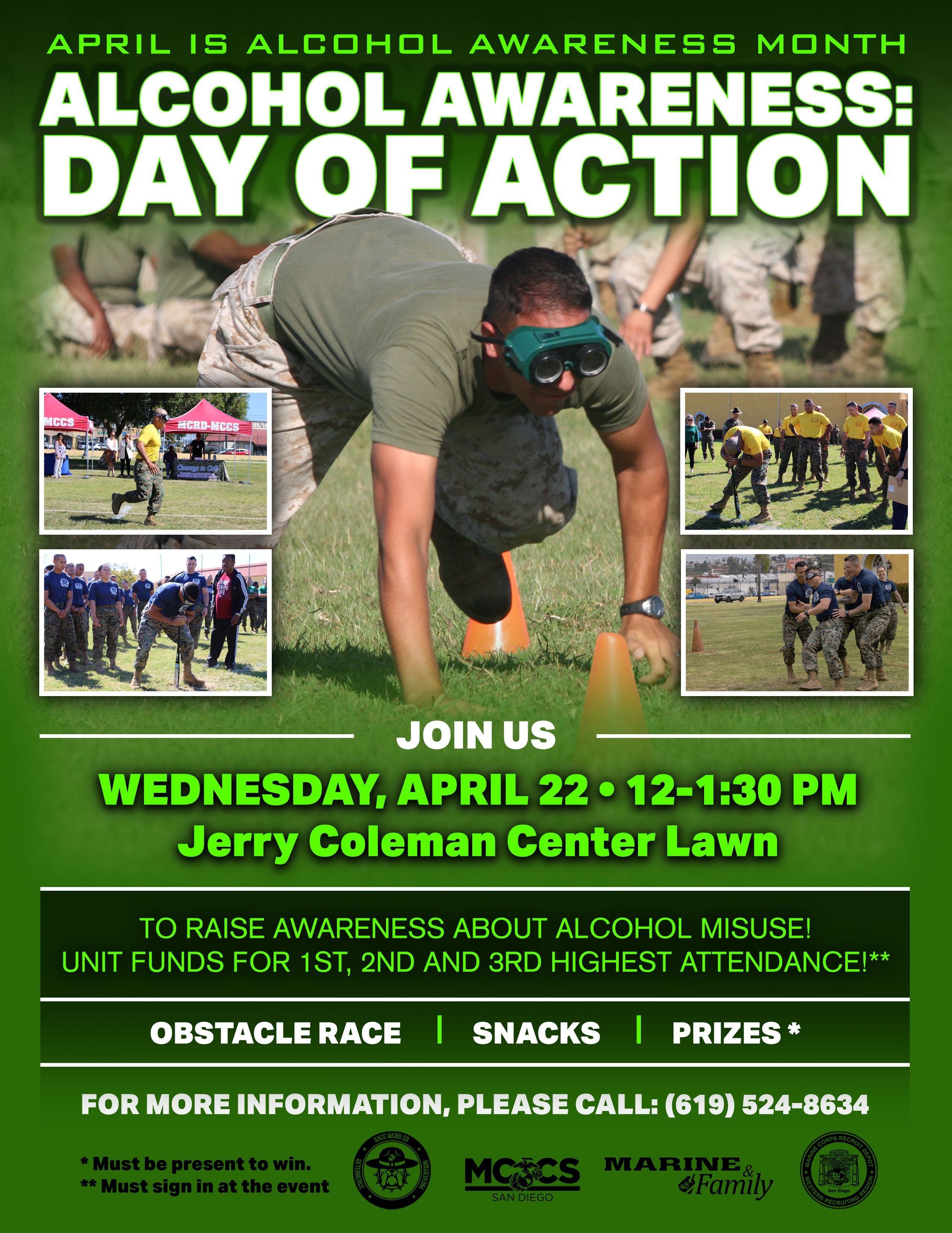 Join us at the Jerry Coleman Center Lawn to increase awareness, understanding, reduce stigmas and encourage our community to focus on alcoholism and alcohol-related issues. There will be activities, entertainment, “Drunk” relay race, and much more!